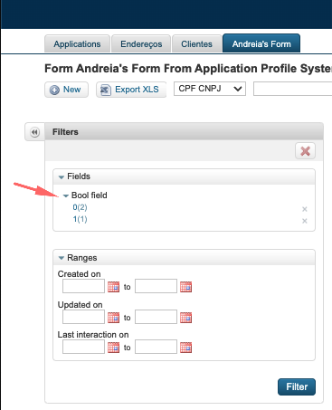 Acessar um aplicativo de formulário com opção de filtro booleano: