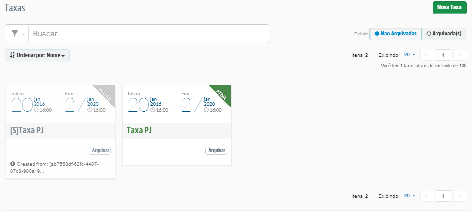 • Taxa Nominal: imposto adicional com valor predefinido.