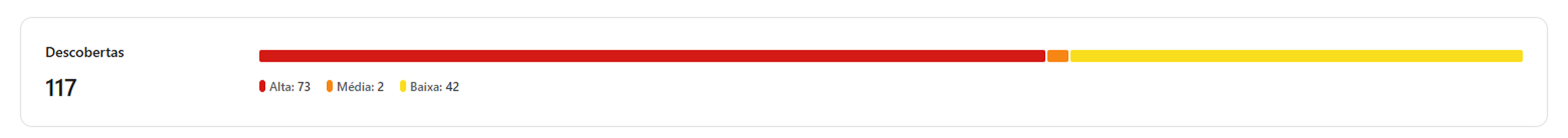 A barra superior indica o total de descobertas e a quantidade de ameaças por nível de severidade (alta, média ou baixa).