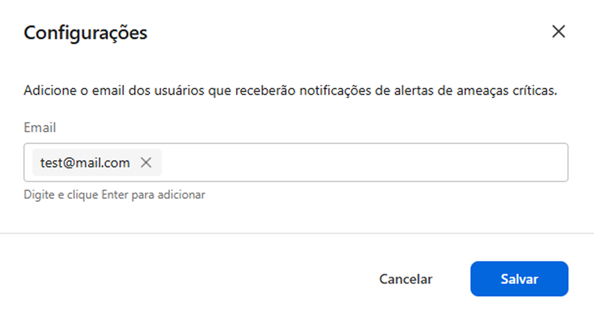 Digite o email do usuário a ser notificado e tecle